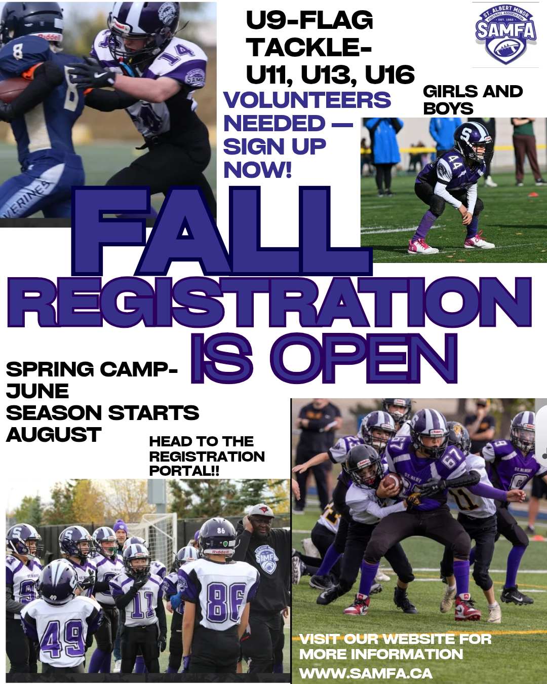 Fall Registration is OPEN, U9 flag and Tackle- U11, U13, U16
